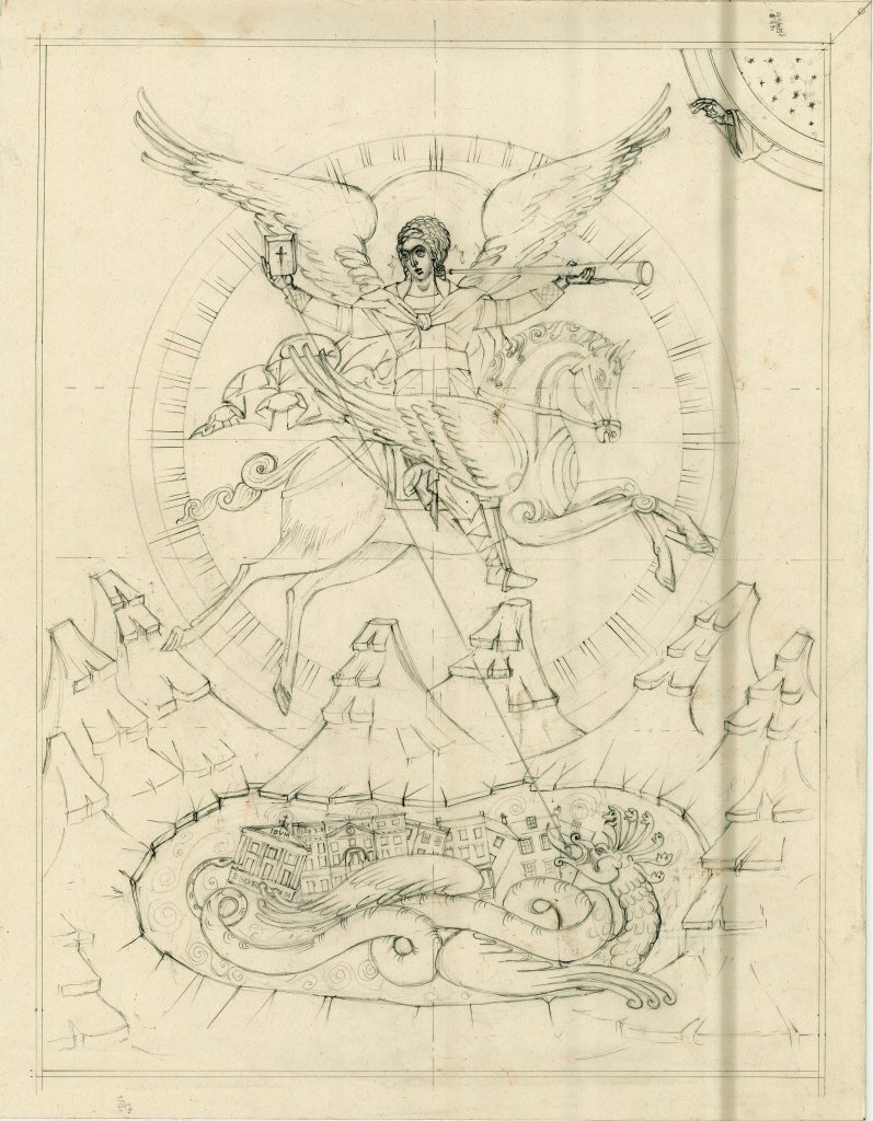 Detail from icon study on paper acknowledging the prototpye by Gabriel Toma Chituc