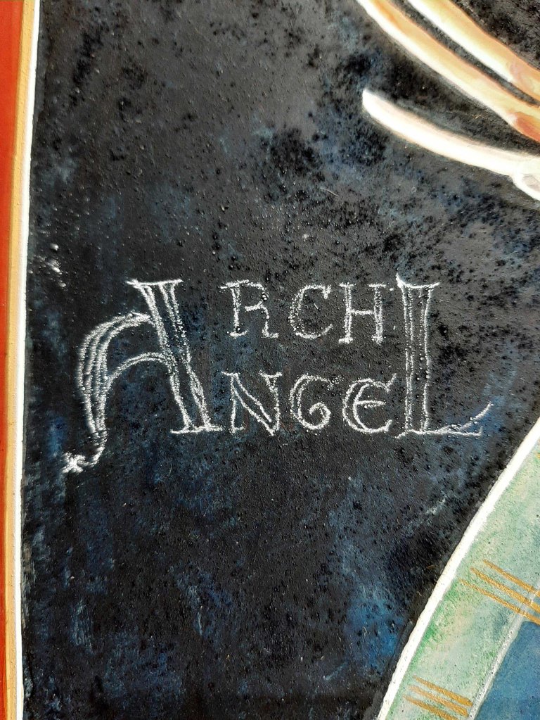 This monochrome of Archangel Gabriel has only had a few brief outings since my diploma. Once in a short lived exhibition at the Bar Convent in York and a couple of weeks on the walls of the Tolbooth, Lanark. Lockdowns – say no more!