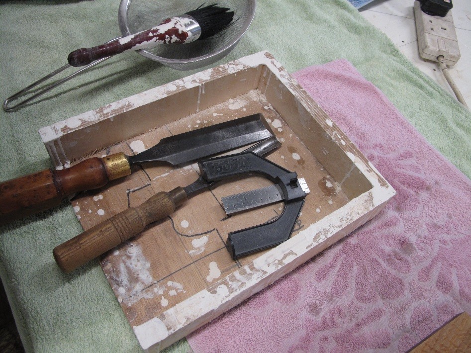 During the gesso process, the sides get splashed and set very hard. The easiest way to clean these up is with a small electric palm sander, like the Makita.
