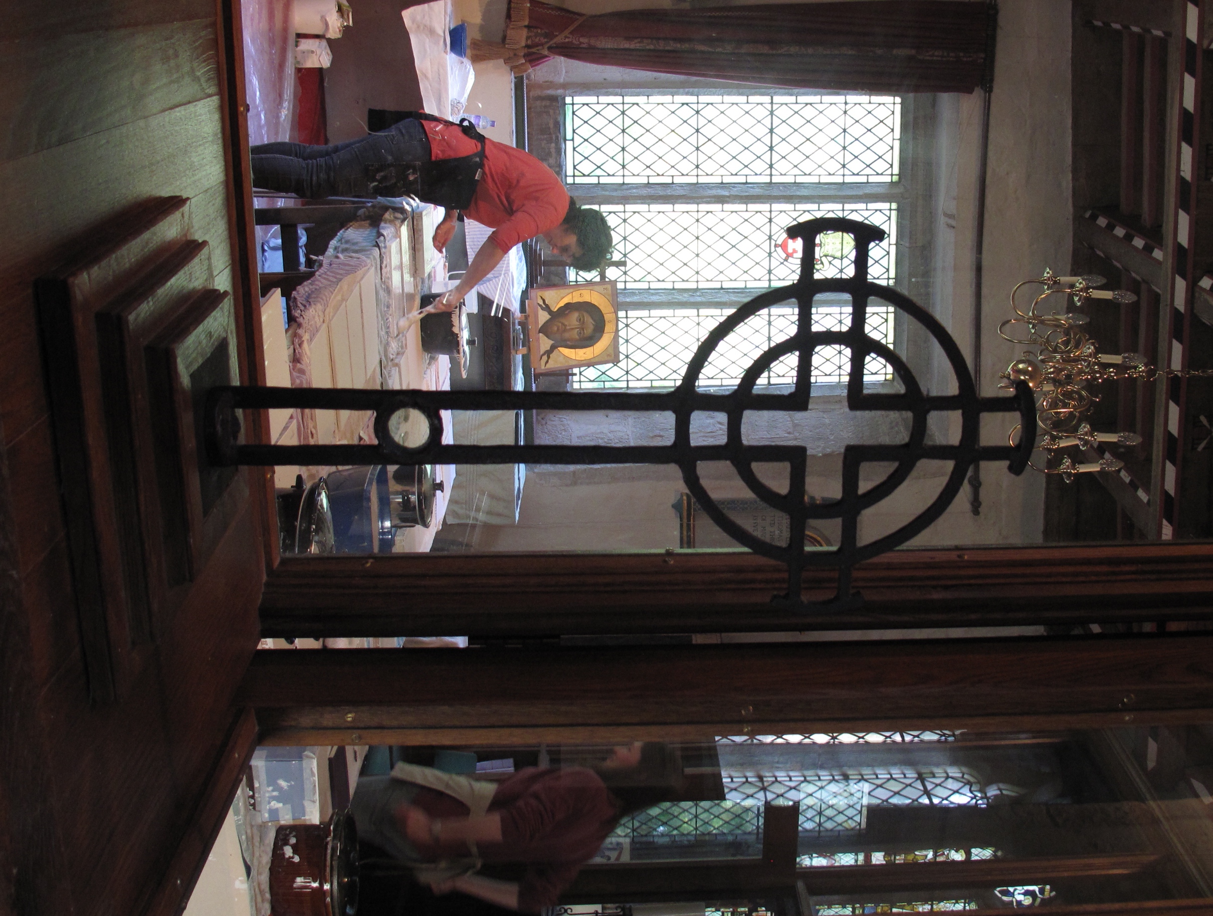 One of the many benefits of our time on the icon course was how much we learnt from each other as well as from our tutor Aidan Hart and from the icon board and church furniture maker Dylan Hartley. I have written about our time learning how to apply gesso warm but today I would like to share what our group learned from one of our fellow students, Janina Zang. Janina gave us a demonstration of how to apply the gesso chilled, when it had set like a jelly. She had learned this technique from a Benedictine monk.