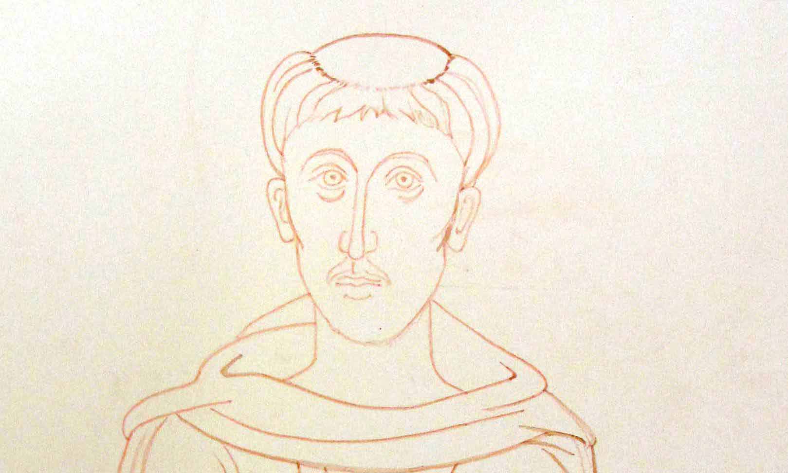 Once all the main lines were transferred on to the board, a weak mix of pigment fixed the lines in place. I then began the underpainting and modelling of the garments.