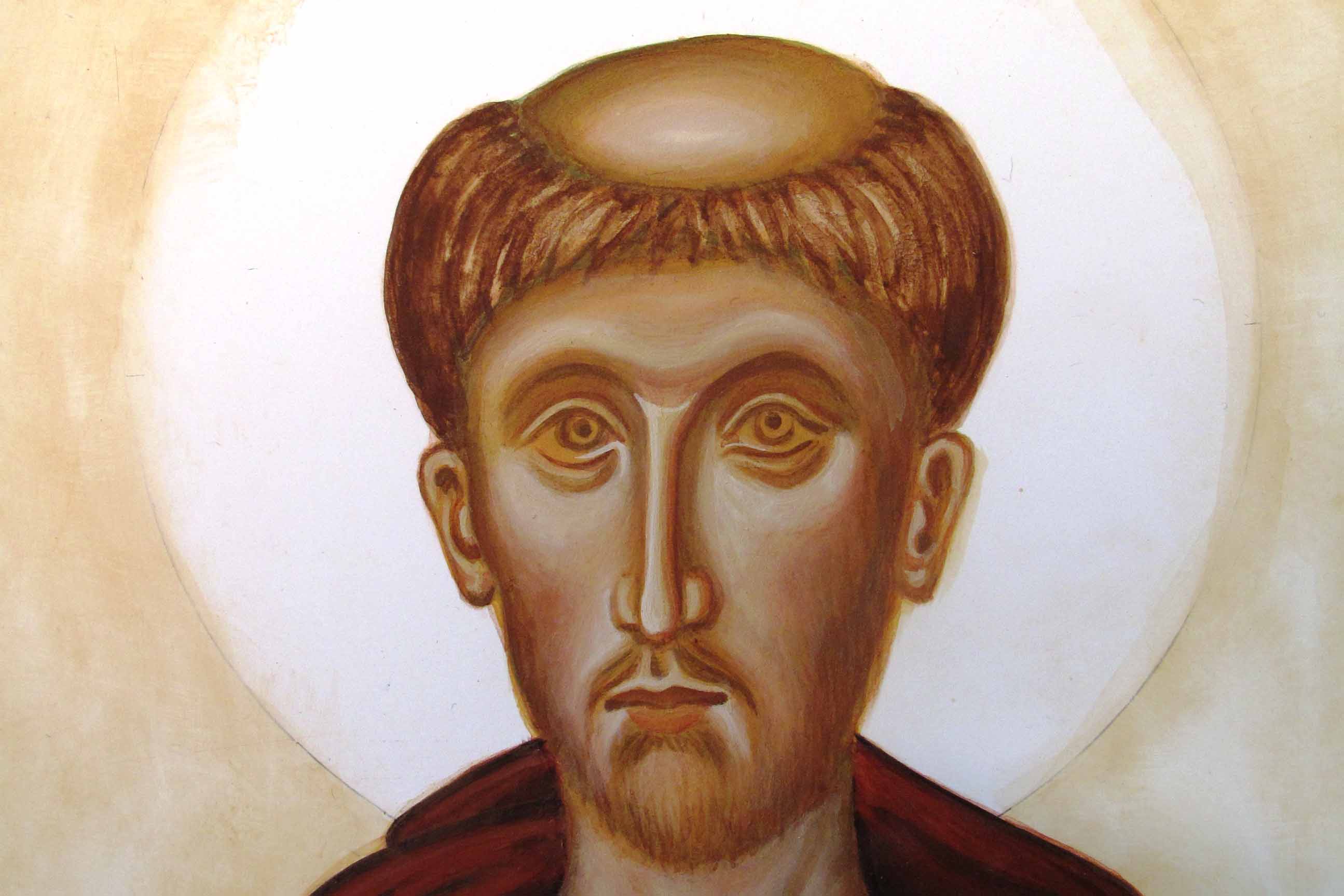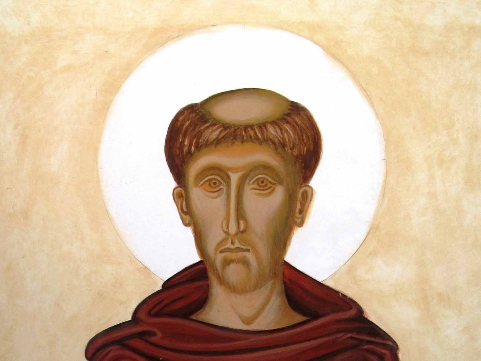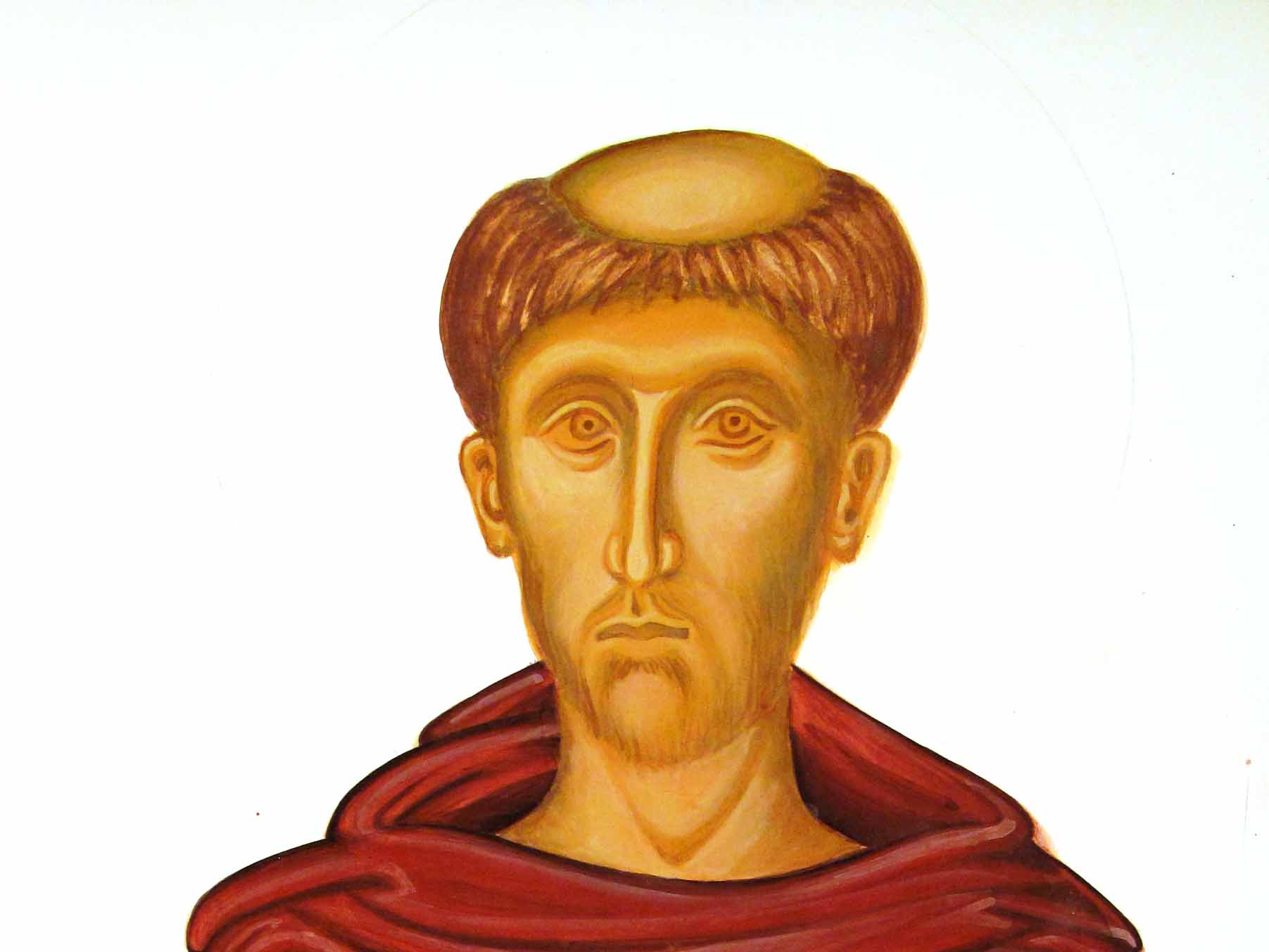 Aidan suggested that I used Red Ochre for the Blessed Virgin’s upper garment as it has some blue in it. I also used Lapiz Lazuli Dark, a beautiful natural blue and Ivory Black to deepen both colours; all pigments are from Cornelissen’s.