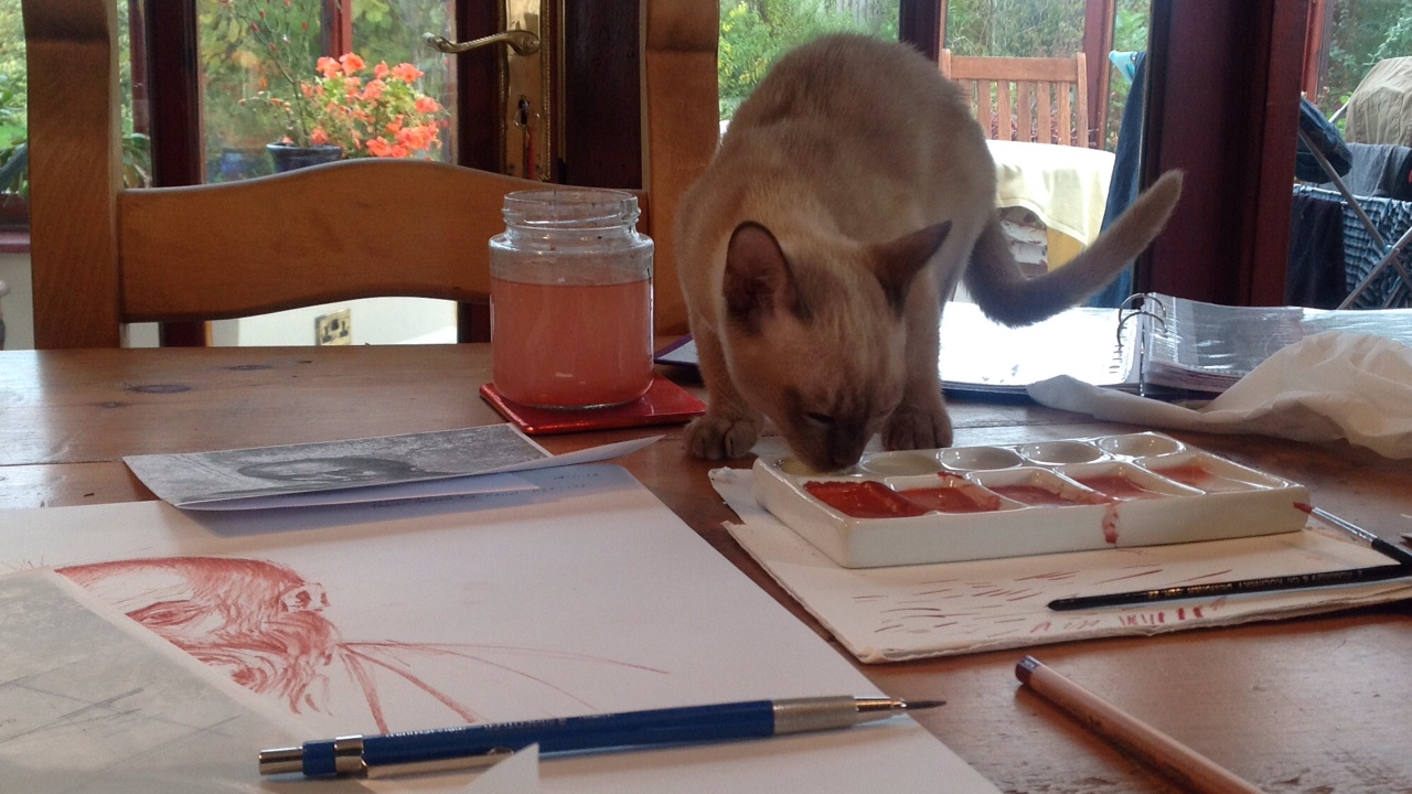 I bought a slab and muller from Patricia Lovett at her Gilding and Traditional Illumination Skills workshop some years ago. It really has come into its own now as I still have malachite, haematite and chrysocolla to grind up.