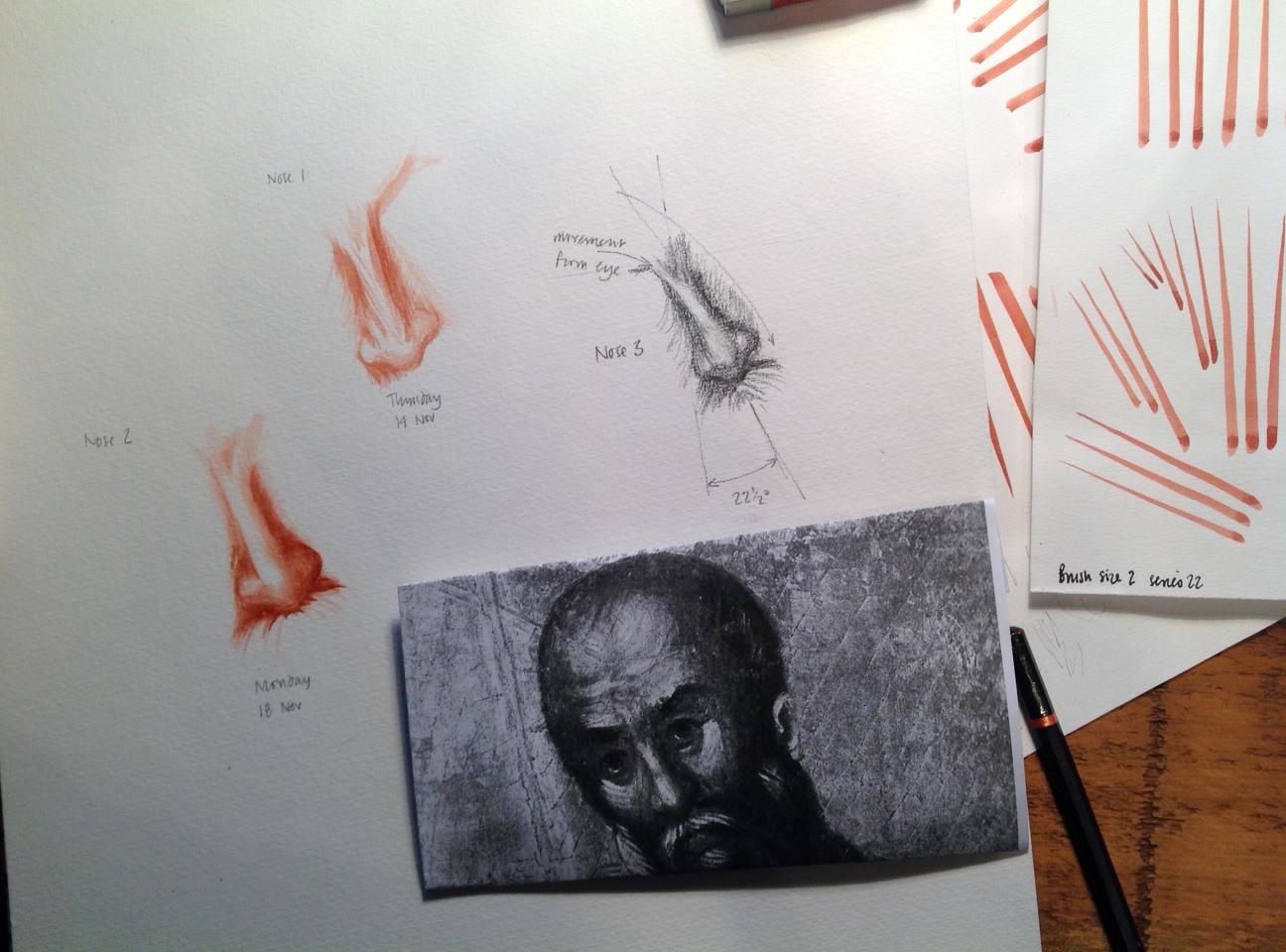 I am working on a triptych (see previous post) where I would like the two standing angels to be painted in a heavenly sky blue so it’s been back to the grindstone to extract this gorgeous colour.