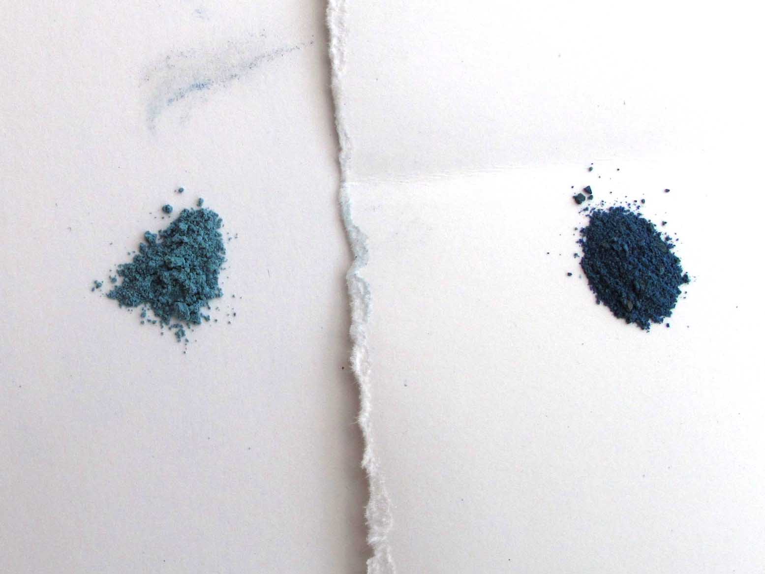 Pigments at last! Samples show mine on the left and the darker pigment of a pre-bought pigment on the right.