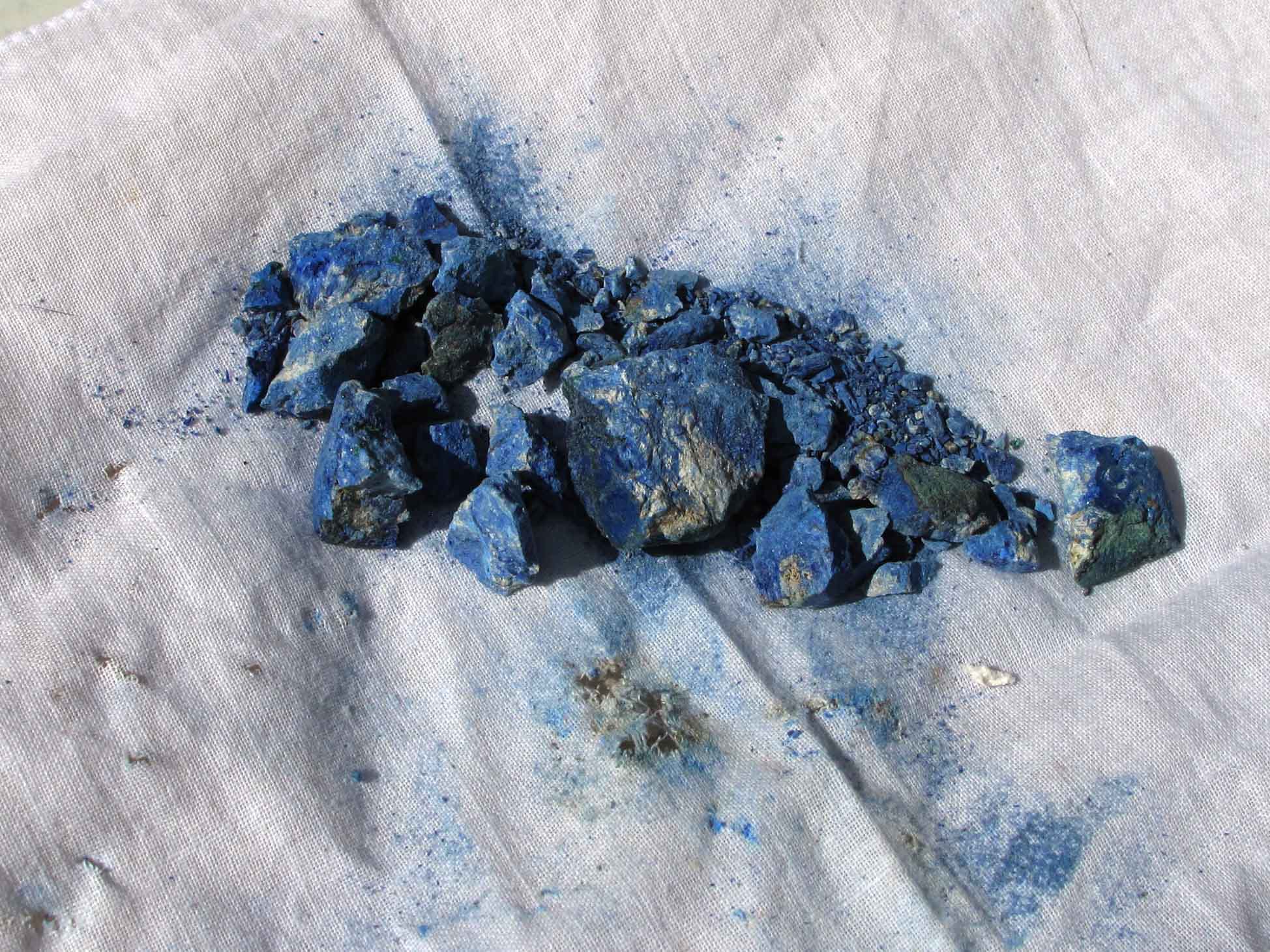 This was last years work, crunching up the rock with a small hammer. It’s surprisingly enjoyable as you see the blue emerge.